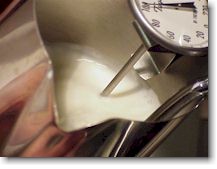 4) Milk temperature is critical. When the milk has reached 80 ºF, push the steam